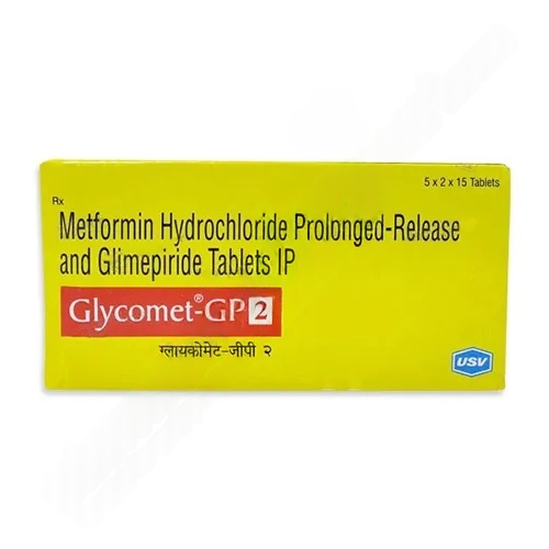 インドのブランド名 Glycomet-GP Forte 1mg-1000mg/1mg-500mg/1mg-850mg/2mg-500mg/2mg-850mg